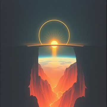 отшельник который держит в руках свет у пропасти края геенны бездны огня освящая звёздный мост