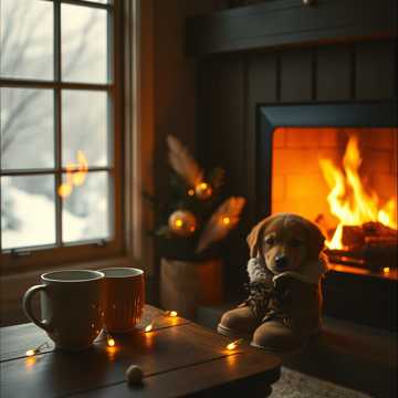Warm acoustic pop ballad, male vocals. Fingerpicked guitar and soft upright bass set a cozy groove; brushed drums and glockenspiel come in on the first hook. Choruses open with layered background “oohs,” subtle piano doubles the topline. Final chorus adds a gentle tambourine and higher harmony for a glowing, fireside singalong feel.