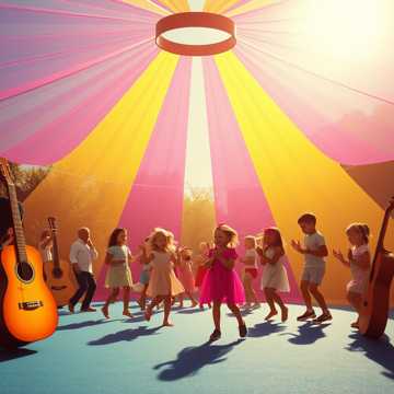 Upbeat kids’ fitness pop; bright acoustic guitar and hand percussion drive a bouncy groove. Female vocals, call-and-response hooks with a children’s choir on the chorus. Claps and stomps accent each move, with a short breakdown where the beat drops to just vocals and snaps before a big, joyful final chorus.