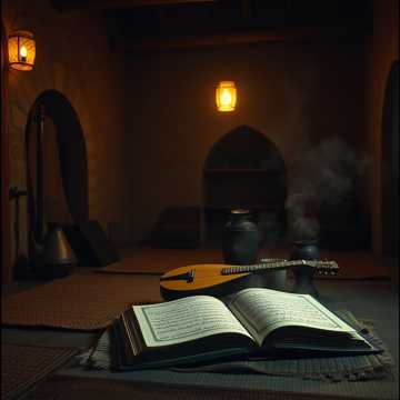 Ancient Yemeni melodic modes over slow frame-drum pulses and droning oud; male vocals in close, reverent harmonies. Verses stay hushed and intimate with sparse qanun phrases and distant wind ambience; chorus blossoms into layered call-and-response lines, subtle reverb, and gentle bass drone. Overall a contemplative, ballad-like arc that feels traditional yet minimalist, perfect for quiet night listening., vocal, ballad, slow
