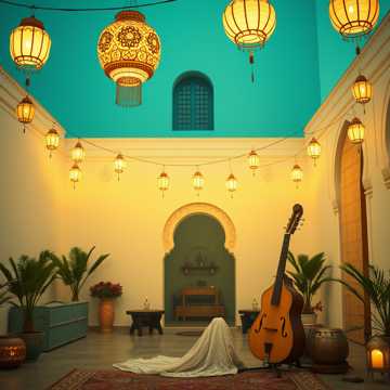 Upbeat Arabic pop-folk wedding vibe, male vocals, driven by melodic oud and energizing tabla groove. Verses stay light and percussive, with airy qanun fills; chorus explodes with group chants, claps, and call-and-response. Mid-song lift through key change and backing vocal harmonies, keeping a joyful, dance-floor energy from start to finish.