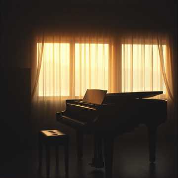 Romantic-era chamber feel: intimate piano and warm strings, slow rubato tempo. Verses stay hushed like late-night practice; chorus blooms with wide, singing chords and soaring violin countermelodies. Subtle room reverb, close-miked keys, expressive female vocals right at the front of the mix.