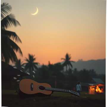 Warm acoustic Minang pop, male vocals. Light talempong and saluang colors around a steady guitar groove, bass gently shadowing the vocal. Verses stay intimate and storytelling-focused; chorus lifts with stacked harmonies and a slightly brighter rhythm. Subtle reverb for a nostalgic village-evening glow.