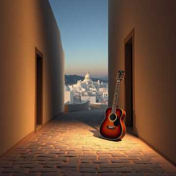 Long-form Spanish song (6–7 minutes) designed for slow walking through an old island town. Calm, warm, contemplative mood inspired by Teguise (Lanzarote). Acoustic guitar as main instrument, very light percussion, warm bass, subtle pads. Slow walking tempo (80–90 BPM). Extended intro and outro, multiple instrumental interludes, melodic bridges, guitar or trumpet solo, soft vocalizations (uh, ah, la-la). Intimate, gentle vocals, close and natural, not dramatic. Atmosphere of cobblestone streets, white walls, evening light, quiet plazas, soft wind. Chill acoustic latino / ambient island pop. Flowing, immersive, meditative, perfect for evening walks.