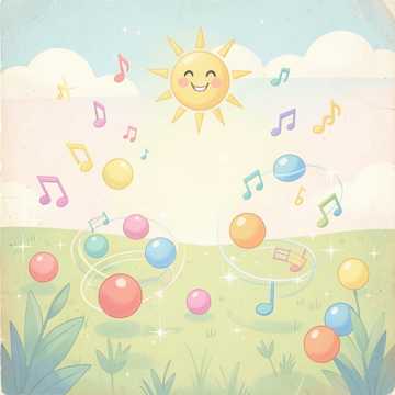 Bouncy, upbeat kids’ score for animation: bright mallet lead (glockenspiel and xylophone) carries the main singable theme, supported by playful pizzicato strings, light ukulele strums, and soft acoustic bass. Hand percussion and claps add gentle drive; occasional slide whistles and cartoon boings punctuate jokes. Arrangement cycles through simple A–B–A–C sections to mirror on-screen antics, with a big, sunny final reprise.