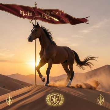 Majestic Gulf-style male vocals over rich tribal percussion, layered oud and qanun answering the melody. Tempo mid-paced with a proud march feel, big group chants on the name in the hook, subtle strings swelling in the chorus for drama, ending on a unison held note and a final drum flourish.