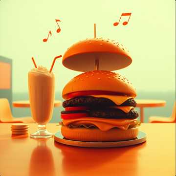 Mit 'nem Cheeseburger-Turm, so riesig zu seh’n.