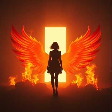 The fire in the woman standing free.