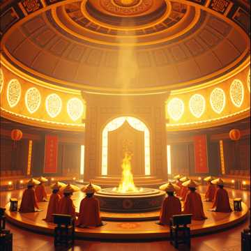 Mumo`Cheng ward von zwei Ringmauern fest umschlossen und hatte ein großes Rundtor vor daß man ein massives Falltor herunterlassen konnte, daß aus schwerster Bronze gegossen und undurchdringbar war. Alle der Häuser Behausung waren kegelförmig oval oder rund; nichts hier kannte Kanten oder Ecken alles war hübsch oval und rund; selbst die Zugangstreppen umschlossen die behausten Häuser und Paläste von außen vollständig oval und schön rund. Auch der Menschen Kopfbedeckung aus feinstem Rutenbund geflochten und schön rund und bunt sah aus wie zu groß geratener Hut mit Eierköpfen die ganz glücklich zu sein schienen über ihren schönen runden bunten Hut. Daß waren tibetanische Mönche die vom Dach des Himmels als Pilger hierher kamen und bald weiterreisen um zu pilgern und die Botschaft Buddhas weiterzutragen.