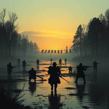 Das Moor ward schwarz tief und un´durchdringbar. Schmale dünne Bäume die Birken ähnlich sahen waren vereinzelt und hoch gewachsen mit stark bewachsenen Blätter Ästen so daß der riesige Sumpf von außen nicht einsehbar; und die Kinesen Sieges sicher ein riesiges Heerlager errichteten mit viel Holz, Leinen, Reis und Bambusblättern; alles Sachen die gut brennen würden und hinter sich im Rücken hatten sie einen sehr breiten und kraftvoll fließenden Strom der selbst mit Flößen gegen die Strömung kaum zu passieren war. Sie saßen in der Falle; nur wussten sie das nicht und waren felsenfest vom Gegenteil überzeugt da sie sich voll und ganz auf ihre starke Infanterie und Schieß Maschinen verließen und meinten die Reiterkrieger könnten sie nur von vorne und einer Flanke angreifen und sie deswegen nicht umreiten und umzingeln und unter Dauerbeschuss nehmen. Der riesige Sumpf war natürlich für Kriegspferde und Tri Böke Katapulte passierbar wenn man wusste wie. Und da lag das Geheimnis das der Schlacht Entscheidung trug. Osman hatte das Schlachtfeld sorgfältig gewählt und des Nachts Wege aus dicken Bambus Matten im Sumpf ausgelegt und sogar die Katapulte wurden so halbzerlegt des Nachts herbei transportiert und so hatten die Kinesen eine komplett offene linke Flanke und wussten gar nichts davon und schneller als sie es sich je hätten vorstellen können ward es um sie gewesen. Sie hatten Rasiermesser scharf geschliffene gegossene Bronze Schwerter Ji´an genannt; sehr lang und tödlich spitz; dann noch den tödlich Dah´o Breitschwert Säbel mit einer oberen Spitz zum Einsatz gegen die Kavallerie; damit schlägt man den Reiterkrieger Pferden die Beine ab. Lange scharfe, spitze Schneller Drache Speere und Ge´ge Hellebarden die Halbmond Lanze; ein Speer mit Axtfunktion. Dann die fliegenden Klauen; eine art Wurfstern in Olivenform und noch die Mandarin Enten Haken, zwei gekrümmte Klingen, paarweise eingesetzt, hervorragend zur Abwehr und bei engen Gefechten sowie das Liu´ksing´chui; der Kometenball und Sternhammer, zwei mit Ketten verbundene Gewichte, die Wurf und Schlagtechniken ermöglichten. Dann die Kwan Kun, Mond und Sonne Ringe eine vielseitige und tödliche Wurfwaffe und die neungliedrige schwere Eisenkette die um den Gegner geschlungen oder als Schlagwaffe eingesetzt werden kann. Am meisten Tradition hat der Yu´ey A´chan, die Mönch´s Schaufel genannt; eine Lang Stangen Waffe mit Sichelklinge dran. Par Aghaba wurds ganz gruslig zumut als sie die ganzen exotisch, grausam Waffen sah und sich dacht die tun bestimmt nicht gut. Ich bin Par Aghaba die Feder des Adlers und wenn der Skythen Greife ihre Flügel in der Steppe Höhen schwingen wird bald des Todes Lied erklingen. Par Aghaba und Bulba Kahn Par Aghaba und Bulba Kahn Par Aghaba und Bulba Kahn Par Aghaba und Bulba Kahn. Die Pferde schnaubten wild und heftig; zogen brutal und kräftig; gar garstig an den Trensen; die Zügel waren kaum zu halten; da ertönt der Angriffs Befehl; ein lauter Jubelschrei entfährt Achtzigtausend Reiterkriegern Kehl´n; die ersten beiden Angriffs Wellen stürmen aus dem Stand in vollem Galopp auf die Kinesen los drehen seitlich ab; reiten entlang der Front, die einen links die andren rechts schießen hundert tausende von Pfeilen ab; kehren um, treffen sich wieder in der Mitt; reiten nun versetzt in Li´ni´en gegeneinander in entgegengesetzter Richtung, schießen durch die Lücken tausende von Pfeilen; bündeln sich in kleine Gruppen; schießen nun aus allen Lagen; von hinten, vorne und der Seit; von oben hagelts eine halbe Million Pfeile; der Himmel ward schwarz; die Haupstreitmacht von dreihundert Tausend Reiterkriegern angeführt von Asena der Wölfin und Osman Khan ihrem Gemahl rückt langsam vor und nimmt den Feind von oben unter Dauerbeschuss; und nun feuern die Katapulte aus dem Sumpf die Skythisch Persisch Bi´tumen, Teer und Napalm Gemisch; die vorderen Reih´n der Kinesen brechen ein; die ersten wollen seitlich flüchten; müssen über die Leichenberge der gefallenen Kameraden steigen; eher mehr trampeln und rennen um ihr Leben und wollen sich im Sumpf verstecken doch hundert tausende von Pfeilen strecken sie nieder; bleibt nur noch der riesige Fluss im Rücken; die meisten ertrinken; das Kinesen Heerlager gleicht einem Flammeninferno; die ersten Generäle ergeben sich und lassen die weiße Fahne schwenken Osman läßt die letzte Salve abfeuern und nach allen Seiten absichern. Kin Schi Huang`di ward geflohen was nicht anders zu erwarten war. Ich bin Par Aghaba die Feder des Adlers und wenn der Skythen Greife ihre Flügel in der Steppe Höhen schwingen wird bald des Todes Lied erklingen. Par Aghaba und Bulba Kahn Par Aghaba und Bulba Kahn Par Aghaba und Bulba Kahn Par Aghaba und Bulba Kahn Par Aghaba und Bulba Kahn Par Aghaba und Bulba Kahn Par Aghaba und Bulba Kahn Par Aghaba und Bulba Kahn. Par Aghaba und Bulba Kahn… Par Aghaba und Bulba Kahn Par Aghaba und Bulba Kahn Par Aghaba und Bulba Kahn Par Aghaba und Bulba Kahn. Par Aghaba und Bulba Kahn…