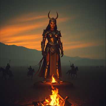 Par Aghaba und Bulba Kahn, mit Oghusan an ihrer Seite, standen auf der Anhöhe und blickten vom Rücken ihrer Pferde weit in die Steppe unter sich das Tiefe Tal; wo in der Nacht funkelte das Erdgruben Behausung Häuser Wohnlager der Menschenfresser Botai Barbaren und schossen ab den ersten Pfeil. Sie hatten an ihre spitzen Steppenkrieger Helme Wangenklappen befestigt die das ganze Gesicht bedeckten; innen gut mit skythischem Yak Filz wattiert, nur die Augen waren frei, um so dem tödlichen Atem der Botai zu entgeh´n. Der Skythen und Oghusen Stammesverbände umritten das Lager in hunderten von gebündelter Kampfverbänden und schossen tausender Pfeile pro Sekunde in entgegengesetzter Richtung reitend bei völliger Dunkelheit durch die Linien Lücken und drangen nun stoßweise in das Lager ein und setzte nun Brandsatz ein und es hagelte nun Brandpfeile von der andren Richtung Seite und so wurden ihnen die Menschenfresser genau vor ihren gespannten Skuthai Bogen getrieben und starben tausendfach in der Pfeile Hagel tödlichem Gruß. Oghusan sprang vom Pferd und das skalpieren und enthäuten begann. Überall an den Feuerstellen lagen noch verkohlte unverzehrte Menschenreste herum und halb gar gekochte Köpfe schwammen in den Kupfertöpfen auf der fettigen, kochenden Menschenfett Kraftbrühe herum. Oghusan hatte schon vier schöne Kriegerköpfe abgetrennt, die er an seinen goldenen Kriegergürtel gehängt, die besonders tapfer gegen ihn gekämpft und hatte auch schon deren Brust und Rückenhaut abgezogen, die mit wunderschönen Schlangenköpfen tätowiert; daß wären wieder vier super edle mit reinem Skythen Gold verzierte Bogen und Pfeil Futteral für ihn geworden. Doch plötzlich völlig unverhofft traf ihn ein mächtiger Keulenschlag am Hinterkopf. Ich bin Par Aghaba die Feder des Adlers und wenn der Skythen Greife Ihre Flügel in der Steppe Höhen schwingen wird bald des Todes Lied erklingen. Par Aghaba und Bulba Kahn Par Aghaba und Bulba Kahn