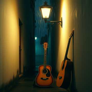 Soft bolero ballad in A minor, male vocals; gentle nylon-string guitar leads with subtle vibrato, warm upright bass walking lightly, brushed snare and rim clicks setting a slow sway. Accordion pad and restrained organ fill the background in the chorus, vocal stays intimate and close-mic’d. Simple key modulation lift for the final chorus, with a touch of reverb tail to deepen the melancholy., bolero