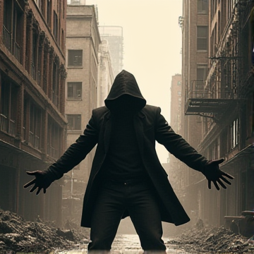 Stålkängor Svart kavaj Iskall blick Han säger inget Alla tystnar när han ler Det är frost i varje andetag