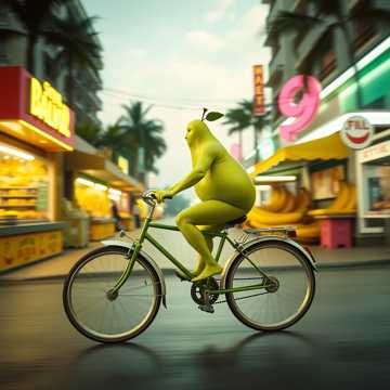 [Vers 2] Svänger förbi ett stånd med bananer i rad De ropar "akta Du får ju salladsskada" Jag skrattar så jag vinglar förbi deras snack Fäller upp stället Drar ett varv och drar iväg igen Tack