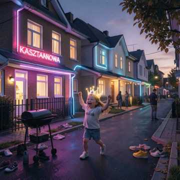 [Verse 1] Na Kasztanowej błyska każdy dom Sąsiad z sąsiadem już podbija front Grill się rozgrzewa, leje się sok Dzieci na trawie tańczą w młynek w bok