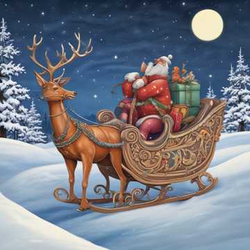 Papá Noel, contento, en su trineo subió,