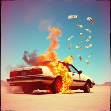 Kék ég, égő autó, ringyók a szélben szállnak,