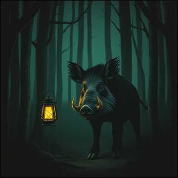 Vers 1 När solen går ner och mörkret blir tätt Tar Pysse sitt gevär, ja då är han rätt Med pannlampan på och en termos i hand Han smyger på vildsvin i skog och i land
