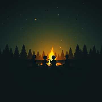 Warm French campfire folk with male vocals; fingerpicked acoustic guitar, soft shaker, and a humming bass drone. Verses stay intimate and close-mic’d, kids’ backing chants tucked low. Chorus swells with group singalong, handclaps, and a subtle accordion pad for nostalgia. Easy tempo, perfect for call-and-response under the stars., chanson