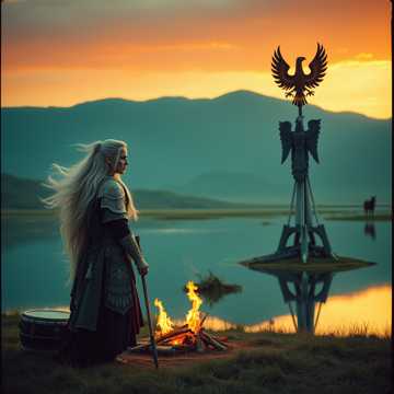 Sie standen noch inmitten des Sees mitsamt ihren Pferden und waren von oben bis unten pitschnass und lachten herzlich und vielen sich in den Arm. Er sah durch den feingewebten Waffenrock ihre nassen schmalen Brüste; mein Gott war sie schön. Sie zog ihm den nassen mit goldenen Kugeln bestickten aus schwarzem Filz gewebten skythischen Waffenrock über den Kopf und sah in mächtge tödlich blitzend schwarze Adleraug´n mit aufgeplusterten Federn an Kopf, Hals und Kragen ; lange Klauendolche an des Greifes Schwingen und mächtge Panthertatzen, Pantherkrallen an seinen Oberarmen die bis zu den Händen gingen. Er war zwei Köpfe größer als sie und extrem gut gebaut. Sie konnte ihren Blick gar nicht mehr abwenden von den wunderschönen Adlertätowierungen auf seiner Haut; die Adlerklauen auf seiner Bauchmuskel gespannten tätowierten Haut hatten es ihr besonders angetan; sie blickte ihm tief in seine hellgrauen leicht honigfarbenen skythischen Augen als sie ihm näherkam. Sie lachten herzlich und heiter; trockneten ihre Kleidung über einem kleinen Lagerfeuer und aßen in der untergehenden Abendsonne etwas luftgetrocknetes Yak Dörrfleisch das Asena unter ihrem Sattel weichgeritten und mit etwas Lagerfeuer Raucharoma köstlich duftend gar köstlich schmeckte. Osman ließ die Pferdefidel Morin Khuur leise erklingen die er bei seiner Ausbildung zur Kriegskunst von Dschingis Khan erlernte und sang ein Urtin Duur traurig langsam Lied mit Sygyt Kargyraa kehligem Pfeifgesang; Asena errötete ein wenig ob soviel trauriger Schönheit und daß er Mongolisch singen und sprechen konnte. Da er meist sehr zurückhaltend war wußten nur wenige ob seiner mannigfaltigen Talente. Sie legte ihren Kopf in seinen Schoß und genoss das herrliche Abendrot und die Stille der Steppe wie sie nur in Zentralasien zu hören ist; und wärmten sich an dem kleinem schönen Lagerfeuer und erzählten sich Geschichten aus der Heimat und wie jung sie einst waren bevor die Steppenkriege begannen und wie sehr sie es schätzte daß Osman die Verantwortung übernahm und Friede einkehrte. Am nächsten Morgen stand Par Aghaba vor ihnen und wollt nach dem rechten sehn und freute sich sehr darüber daß Osman und Asena sich näher gekommen und nun ritten alle gemeinsam wieder gen Heimat zu dem wunderschönen Türk`mehnen Kämp. Ich bin Par Aghaba die Feder des Adlers Und wenn der Skythen Greife ihre Flügel in der Steppe Höhen schwingen wird bald des Todes Lied erklingen. Par Aghaba und Bulba Kahn Par Aghaba und Bulba Kahn Par Aghaba und Bulba Kahn Par Aghaba und Bulba Kahn. Laute Donnerhufe erschallten in der Steppe unter der Türk`mehnen ewigem Himmel; der Boden vibrierte, wilde Reiterkrieger nahten; eine riesige Wand aus Sand vor sich hertrieben; der Sand so rot und staubig wie die Pferde lauf und kampfesdurstig; daß waren wahre Reiterkrieger die die Steppe und den Kampf liebten. Wild und ungestüm drangen sie ein in das wunderschöne Türk`mehnen Kämp; es war Verwandtschaft und befreundete Stämme: Die On Ök Türken, Karluken, Kiptschaken, Uiguren und Töllisch Türken die auch Verlobung mitfeiern wollt´n und den junge Skythen und Oghusen Prinz`n sich mal von der Nähe aus anschau`n wollt`n der scheinbar über außerordentliche Qualitäten verfügen konnte. Asena hielt Osman fest an der Hand weil die Verwandtschaft rechte Raufbolde und vergorener Stutenmilch sehr angetan; aber heute schienen sie sehr freundlich; waren anständig und wußten sich zu benehmen. Asena und Osman ritten in die Steppe und wollten für sich sein und die Ruhe genießen und hinter der Hügelkette gab es einen kleinen Gebirgsbach; sie zog sich völlig nackt aus, mein Gott war sie schön und sprang von dem hohen Felsen mitten in den See. Osman sah den Felsen hinunter; ganz schön hoch der kleine Felsen; zog sich auch aus bis auf die Unterhos die ließ er an man weiß ja nie; und sprang hinein in diesen wunderschönen Smaragd grün leuchtenden Hochplateau See und sie planschten und liebkosten sich und freuten sich des Lebens wie kleine Kinder; da kamen wieder drei ihrer Brüder diesmal die ältesten ihrer zwölf Brüder und baten sie freundlich aber bestimmt aus dem Wasser heraus da die Gäst schon warten. Asena versteckte sich in einem dichten Gehölz und gab Osman einen Kuss und zwar direkt auf den Mund. Ihm wurde ganz schwindlig zumut und er küsste sie auch; und immer leidenschaftlicher wurde ihr Kusss sie atmete heftig und wollt noch mehr; aber das muss jetzt warten bis zur Hochzeitsnacht zumindest offiziell; aber sie war eine wilde Wölfin von unglaublicher Kraft obwohl so klein und Zierlich von immenser Kraft und eisernem Willen und Durchsetzungskraft und ein wahrer Wildfang. Par Aghaba war mehr als glücklich. Ich bin Par Aghaba die Feder des Adlers und wenn der Skythen Greife ihre Flügel in der Steppe Höhen schwingen wird bald des Todes Lied erklingen. Par Aghaba und Bulba Kahn Par Aghaba und Bulba Kahn Par Aghaba und Bulba Kahn Par Aghaba und Bulba Kahn Par Aghaba und Bulba Kahn Par Aghaba und Bulba Kahn Par Aghaba und Bulba Kahn