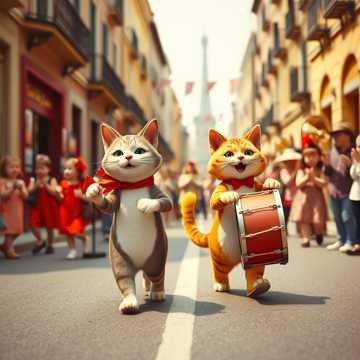 [Chorus] Katzenmarsch mit Pips und Lucky Tap tap tap durch jeden Tag Tatzen hoch und Nasen wackeln Wer marschiert Weil er’s so mag Katzenmarsch mit Pips und Lucky Hei Wir laufen Schritt für Schritt Alle Kinder Klatscht in die Hände Marschiert ein Stückchen mit
