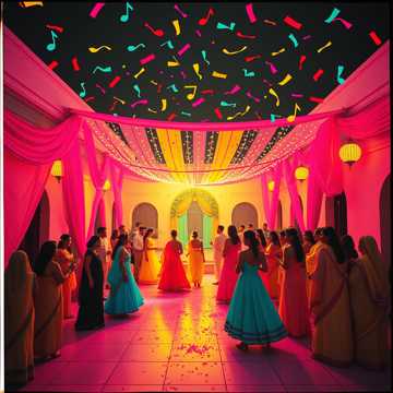 High-energy Sindhi wedding folk groove, dholak and claps driving the rhythm from the top. Call-and-response male vocals with a bright female backing group on the hook, harmonium and bansuri filling the mids. Chorus explodes with crowd shouts and handclaps; verses stay punchy and percussive, leaving space for dance breaks and ululations.