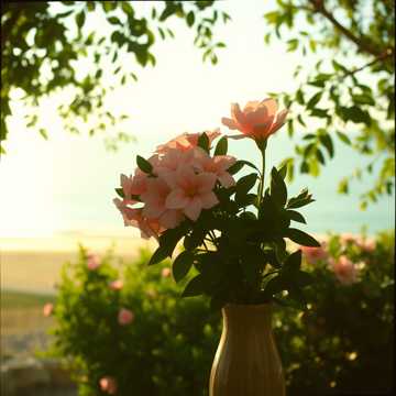 Там пышный куст живых цветов в вазоне вырос.
