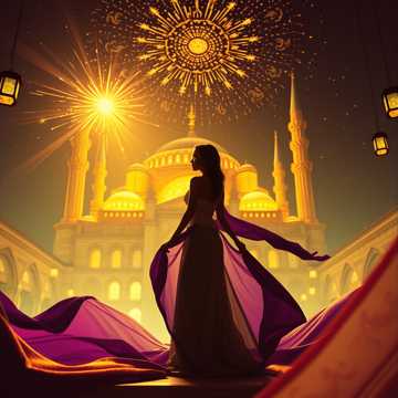 Bei den Tuchhändlern begrüßte sie ein Meer aus Samt und Seide; schwere Ballen kostbarster Stoffe aus Purpur, der Farbe der Sultane und schimmernde zart glänzende Seide die wie flüssiges Gewebe durch die Finger gleitet. Tiefgrüner und tiefdunkel nachtblauer Samt und Brokat verteilen ihr schimmernd, geschecktes, gebrochenes Licht und schlucken in sich hinein das flackernd, spärliche, ölig, rusige Licht der Öllampen, während die goldbestickten Brokate Geschichten aus fernen Ländern erzählen. Sie durchschritten das riesige Eingangstor der Hagia Sofia und ein Lichtermeer aus Gold, Silber, reinster funkelnder Edelsteine und reinem eingefangenen Licht tat sich vor ihnen auf; es fühlte sich an als würden sie den Mittelpunkt; das Zentrum des Universums betreten, so hell leuchtete das Licht, es ward eine Sternen Explosion. Sie standen inmitten der riesigen Himmelshalle und konnten ein Ende nicht entdecken; die Himmels Kuppel reicht samt Gewölbe bis in die Unendlichkeit des Himmels Höhen und ward so von goldenen Licht durchflutet daß man schon meinte das die Augen einem einen Streich spielten. Aber so Langsam hatten sie sich an das göttliche Licht gewöhnt und man konnt erkennen um was es hier geht und wie schön verziert diese Himmels Halle war. Feinste arabische Schriften waren an den Wänden eingraviert wie eintätowiert und leuchteten Goldlack schwarz und grüngolden Gelb und reichten in vielen Kalligrafischen Mustern und Ornamenten bis in des Himmels Höhen und viele Engel und Heilige waren zu bestaunen; viel Pomp und Prunk dachten sich die in Glaubens Dingen bescheidenen und toleranten Steppenkrieger; Rostam kannte das schon aus anderen Nah östlichen Kulturen. Die Dimensionen der Himmels Halle waren Ehrfurcht gebietend; viele Tausende von Gläubigen konnten hier Platz finden, vereint unter dem gigantischen, göttlichen Himmels Baldachin aus Stein und Gold. Der einzigartige Lichteinfall schuf eine spirituelle Aura von erfüllter, gemeinschaftlich erlebter liturgischer himmlischer Erfülltheit und spiritueller Qualität wie sie auf ähnliche weise wohl nur am höchsten Punkt der menschlich Menschenwesen Welt, dem heiligen Berg des Altai; auf der Spitze des Bergs Öteken auf dem Dach der Welt wo sich Himmel und Erde berühren zu finden ist.