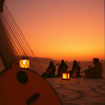 Warm Khaliji ballad with male vocals, oud and qanun leading over gentle percussion and deep bass. Verse starts intimate and close-mic, then chorus opens with wide reverb, group backing chants, and subtle claps. Mid-song lift adds strings and firmer groove, then a soft outro on solo oud and vocal ad-libs.