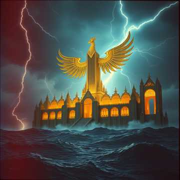 Cinematic hybrid orchestral with massive brass swells, choirs, and distorted guitar; tempo builds from ominous drones to heroic march. Verses carried by low strings and taiko-style drums, chorus explodes with stacked male vocals and soaring french horns. Dramatic risers and sub drops between sections for blockbuster impact., soundtrack