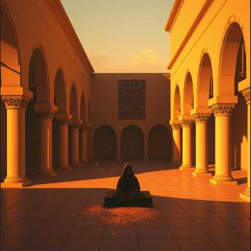 Minor-key Arabic-influenced ballad, male vocals, oud and qanun over a slow, rolling groove; verses in a half-spoken lament that opens into a sorrowful, chant-like hook. Sub-bass and frame drum build through the chorus, with distant choral pads on repeats to give a sense of ancient weight and moral outrage.