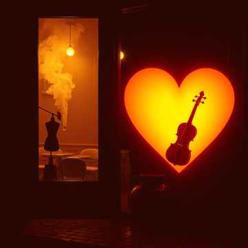 North African chaabi ballad, mid‑tempo groove with oud and violin answering the male vocals; verses intimate over light percussion, chorus blooms with stacked call‑and‑response hooks and earthy darbuka, subtle reverb for a smoky café feel