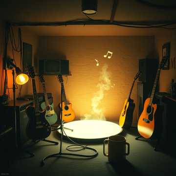 [Vers 1] Samling i källarn klockan sex Slitna förstärkare Kaffe ur mugg Sladdar som ormar över golvet Någon glömde plektrum Som vanligt