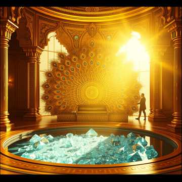 Dschalal ud´din, Akbar der Große ließ sein morgendliches Diamanten Bad vorbereiten. Das ovale, freistehende, vier Meter große Wannen Becken war aus purem Gold und an der Längs Seite erhob sich ein drei Meter hoher Pfau der ein Rad schlug und war aus reinem Gold und hatte runde schwarze Diamanten Augen. Die festen Federschäfte von denen die beidseitigen Feder Äste abzweigten waren aus feinstem Gold ziseliert und mit funkelnden roten Rubinen besetzt. Die winzigen Bogen und Hakenstrahlen welche die schillernde Fahne bilden waren mit tausenden von blauen Saphiren und tief dunkel schimmernden grünen Smaragden eingefasst. Er stieg völlig nackt in seine prächtige, goldene Pfauenwanne und ließ sie anfüllen bis zum Rande mit edel´ster und seltenster in allerhöchster Qualität geschliffener lupenreiner Diamanten in Lichtweißer, schillernd funkelnder und blitzender, kristallklar leuchtender so rein wie der Sonnefarben Farbe; und ließ sich von seinen über eintausend Konkubinen kräftig den Rücken und die Schultern massieren und Horn Haut und Hautschuppen vom Rücken runter bürsten mit den Kokosfasern Handschuh´n und den kostbaren, unbezahlbaren edlen Diamanten Steinen. Dann ließ er sich noch von oben bis unten mit eiskaltem heiligen Ganges Wasser abspritzen und gut trocken reiben und es wurden ihm seine kaiserlichen Groß Mogul Seidengewänder angezogen und er bestieg den Pfauenthron; er hatte eigentlich nicht viel zu tun und es wurd ihm etwas langweilig und müh´selig zumut; und er betrachtete den ewig prächtigen, glorreichen Pfauenthron. Par Aghaba war das zuviel nutzloser Reichtum. Ich bin Par Aghaba die Feder des Adlers und wenn der Skythen Greife ihre Flügel in der Steppe Höhen schwingen wird bald des Todes Lied erklingen. Par Aghaba und Bulba Kahn