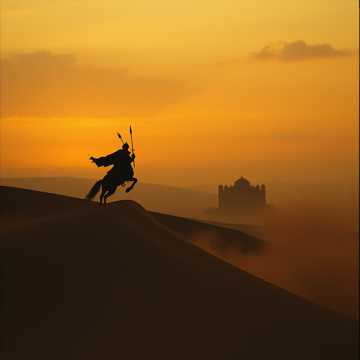 Aurangzeb ritt verbissen an vorderster Front Linie; hinter ihm seine ganze Mogul Kaiser Verwandtschaft und merkte nicht, daß sie mittlerweile in einer Talsenke mit hohen Dünen an den Seiten und vor sich die Erhebung mit der alten Zitadelle, die nicht zu umreiten und der Endpunkt im Tal Kessel und nur zu Fuß mit viel Mühe zu umgehen; und plötzlich drehten die achtzigtausend Radsch´puten Reiterkrieger um und stürmten in breiter, den ganzen Tal Kessel ausfüllender Front auf sie zu, mit ohrenbetäubendem Kriegsgeschrei; und es hagelte hundert Tausende von Pfeilen aus des Kessels Dünen und seine Krieger fielen und fielen zu tausenden unter der Pfeile tödlichem Beschuss; der Himmel ward schwarz und grausam sangen sie in des Himmels Höhen ihr tödlich Spiel; und immer noch ward kein feindliches Heer zu sehn. Sie versuchten zurück zu flieh´n; aber der Weg ward versperrt; sie waren eingekesselt. Volle Flucht nach vorn; da wurde er schon vom ersten Pfeil getroffen und fiel vom Pferd und sein Pferd gleich mit. Da wurden die Dünen schwarz und hundert tausende Perser, Skythen und Oghusen Krieger ritten die Dünen herab in leichtem Trab; ihre Skuthai Bögen gespannt; die nächste Salve würden sie nicht überleben; also forderte er Rana Singh Rathore zum Zweikampf heraus. Par Aghaba kannte diese Tradition auch aus der Skythen und Oghusen Heilig Steppenland. Ich bin Par Aghaba die Feder des Adlers und wenn der Skythen Greife ihre Flügel in der Steppe Höhen schwingen wird bald des Todes Lied erklingen. Par Aghaba und Bulba Kahn