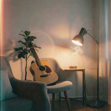 Warm close-mic male vocals over soft nylon-string guitar, intimate living-room vibe. Fingerpicked verses, gentle harmonic flourishes between lines. Chorus lifts with fuller chords and subtle rhythmic push, then settles back into a hushed, romantic cadence. Microphone captures breath and finger noise for a tender, confessional feel.