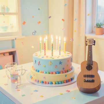 Bouncy acoustic pop with ukulele, claps, and light piano. Female vocals, playful delivery, kids-party energy. Verse stays intimate and talky, chorus blossoms with group chants, tambourine, and simple bass. Mix bright and upfront so every word of the birthday message feels close and personal.
