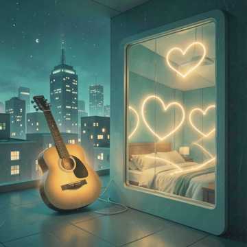 Mid-tempo Latin pop ballad with nylon-string guitar and soft percussion, gentle piano fills, and warm male vocals; verses stay intimate and conversational, then the chorus lifts with stacked harmonies, tambourine, and a wider stereo image. Subtle bass glues the groove, with a short dynamic rise on the bridge before dropping back into a tender final hook.