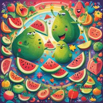Это музыка об авокадо... Только о нём.. Авокадо самое лучшее на свете.... Никто её не переплюнет в цвете... Оно прекрасно во всём.. Ведь я... Арбуз...