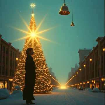A joyful, romantic Christmas pop song with sparkling bells, big festive instrumentation, uplifting gospel choir harmonies, and a powerful female lead vocal in the style of . Warm piano intro, sleigh bells, bright strings, and soulful ad-libs. Emotionally uplifting, nostalgic, magical holiday atmosphere. Tempo around 150 BPM, upbeat and dancey but sentimental and heartfelt. Dynamic build toward a big chorus with soaring vocals, key change at the final chorus for dramatic effect. Lyrics about holiday love and togetherness. Make it beautiful, glossy, cinematic, Christmas pop perfection.