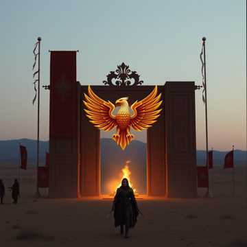 Als Par Aghaba und Bulba Kahn, Osman Khan und seine Gemahlin Asena die Wölfin das große Rundtor von Mumo´Cheng durchquerten und auf die weite Ebene der Steppe zuritten und die Stadt hinter sich ließen warteten schon fünf Reiterkrieger auf ungewöhnlich kleinen Steppenkrieger Pferden auf sie. Die Ponys waren sehr hell; fast sandfarben; hatten eine schwarze Stehmähne die als schwarzer Strich bis zum Schwanz entlang strich. Bulba Kahn kannte diese Art von Pferden und wußte sofort was Sache ward; daß waren Häuptlinge der Barbaren Stämme aus dem Norden; er kannte sogar einen von ihnen. Die fünf Steppenfürsten ritten auf sie zu und verzogen keine Miene. Sie konnten dem Anschein nach keine Turk Sprachen aber Osman der Große; Khan aller Khane konnte Mongolisch und das verstanden die grimmigen Steppenkrieger leidlich; bis der Hauptanfüher Modu´chan´yu aus dem größten der Barbaren Völker, der Xiong Nu, Bulba Khan erkannte und ihn; in bestem oghusisch begrüßte: Tut mir leid alter Freund meine Augen sind mir nur noch die Hälfte wert; ich seh auf die Fern nix mehr; aber umso besser mein Pferd; so kann ich durch die Steppe reiten ganz unbeschwert, solang mir keine Stadt den Weg versperrt. Dann kam auch Nur´hadschi näher; der Groß Khan aller Mandschuken; die beinah hätt´n Kublai Khan tot vom Pferd runter geschossen und begrüßte sie in perfektem Mongolisch. Dann kam Tadun Low´uh ´ban; Groß Khan aller Wu´hu´yan und blieb stumm; er konnt nur Wu Han kinesisch und das kam gar nicht gut an. Dann der Anführer der Xian´bey; Tanschi Huawei der alles sprechen konnte außer Han Kinesisch. Dann Lüh´gu Ang; Groß Khan der Rong Di; der nur der eigenen Muttersprach´ kund; tat sich etwas schwer mit zu lachen, aber als alle lachten, fiels ihm nicht mehr schwer und er lacht´ von allen am lauts´tn. So ward alles klar; nur noch die Frage der Tribute zu klären; die die fünf Barbaren Stämme von der Stadt Mumo´Cheng erwarten: Das laßt uns Heute nicht entscheiden; seit unsre Gäst in unsrem schönem Lager nahe Kara Korum und laßt uns reichlich feiern und uns die Zeit vergessen und sei’s drum, wir werden nicht jünger und die Nacht ist noch lang. Par Aghaba gab ihren neuen Freunden völlig recht und freute sich schon auf das Fest. Ich bin Par Aghaba die Feder des Adlers und wenn der Skythen Greife ihre Flügel in der Steppe Höhen schwingen wird bald des Todes Lied erklingen. Par Aghaba und Bulba Kahn Par Aghaba und Bulba Kahn Par Aghaba und Bulba Kahn Par Aghaba und Bulba Kahn. Das festlich Gelage war mehr ein Besäufniss als Gelage. Nach tausender Gallonen vergorener Stutenmilch und Reiswein samt der Flasch in den Hals hinein, erbrachen sich mindestens die Hälfte der knapp zehntausend Barbarenkrieger und feierten dann lustig weiter und jagten ihre Sklaven durchs Camp einmal hinaus und dann wieder hinein als würds kein Morgen mehr geben bis Groß Khan Modu´chan´yu aus dem Volk der Xiong´ Nu ein Machtwort sprach und ihnen Einhalt gebat. Sie saßen alle beisammen und Modu´chan´yu erklärte ihnen daß die Kinesen soviele Städte bauten und Wasser abgraben das kein Platz mehr für ihre Weidetiere und nomadisches Leben: Wir müssen ihnen einen großen, schmerzhaften Schlag verpassen von dem sie sich nicht mehr erholen; weil die bauen ihre Städte schneller wieder auf als wir sie niederbrennen können. Ich weiß nicht wirklich was die im Schilde führen; wenn du mit ihnen Handel treibst, sind sie ganz manierlich. Manchmal denk ich die wollen uns Steppen Nomaden für immer und ewiglich aus der Steppe hab´n. Da meldete sich Osman Khan zu Wort: Ich kanns fast nicht glauben, Kublai Khan ist doch selbst ein Steppenkrieger; ich möcht keinen Krieg mit ihm riskieren; außerdem ist er mein Schwager und Blutsbruder; noch dazu mein bester Freund; ich muß mal mit ihm reden. Alle gaben Osman Khan recht und Asena die Wölfin ward stolz auf ihren kleinen Skythen und Oghusen Prinzen. Par Aghaba freute sich mächtig; daß ihr Sohn sich in Steppenkrieger Staatsgeschäften entwickelt so prächtig. Ich bin Par Aghaba die Feder des Adlers und wenn der Skythen Greife ihre Flügel in der Steppe Höhen schwingen wird bald des Todes Lied erklingen. Par Aghaba und Bulba Kahn Par Aghaba und Bulba Kahn Par Aghaba und Bulba Kahn Par Aghaba und Bulba Kahn Par Aghaba und Bulba Kahn Par Aghaba und Bulba Kahn Par Aghaba und Bulba Kahn Par Aghaba und Bulba Kahn. Par Aghaba und Bulba Kahn… Par Aghaba und Bulba Kahn Par Aghaba und Bulba Kahn Par Aghaba und Bulba Kahn Par Aghaba und Bulba Kahn. Par Aghaba und Bulba Kahn…