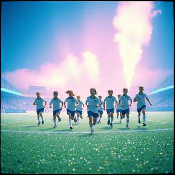 rock, Bright pop‑rock stadium feel, kids’ choir plus energetic male vocals, big gang shouts on hooks. Palm‑muted guitars in the verse, toms and claps building into an explosive, sing‑along chorus. Simple power‑chord riffs, playful synth bells doubling the main melody, and a driving beat that keeps it bouncy and upbeat., pop