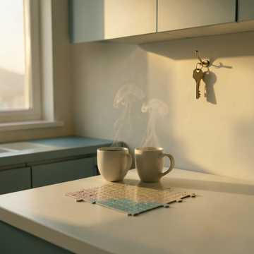 Warm indie-pop band feel, mid‑tempo groove, male vocals. Clean electric guitars with soft chorus, rounded bass, and tight drums; verses stay intimate and close-mic’d, chorus lifts with wide harmonies and a subtle synth pad. Bridge strips back to vocal and guitar, then band blooms for a final, anthemic hook.
