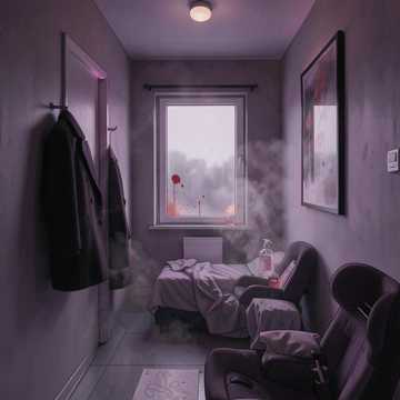 (obcasy dalej, cisza, szafa, wdech w materiał, jeden psik w pustkę)