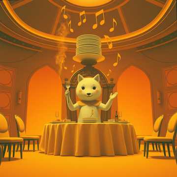 [Verse] Roland sits where the sunlight bends A fork in one hand A feast that never ends Plates stacked high Oh the food parade Each bite a song Each crumb a serenade