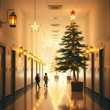 [Verse] Tra i banchi e le pareti si respira magia Stelle di carta e neve di fantasia Un albero gigante nel corridoio sta Con mille luci accese che brillano qua e là