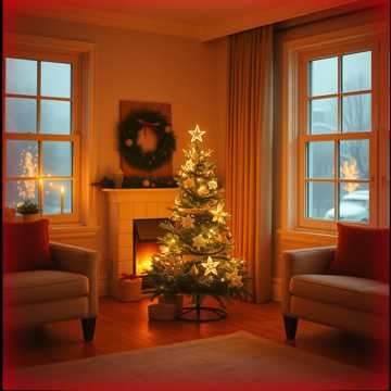 Ott állt karácsonyfa, rajta égő gyertyák,