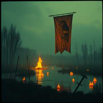 Das Moor ward schwarz tief und un´durchdringbar. Schmale dünne Bäume die Birken ähnlich sahen waren vereinzelt und hoch gewachsen mit stark bewachsenen Blätter Ästen so daß der riesige Sumpf von außen nicht einsehbar; und die Kinesen Sieges sicher ein riesiges Heerlager errichteten mit viel Holz, Leinen, Reis und Bambusblättern; alles Sachen die gut brennen würden und hinter sich im Rücken hatten sie einen sehr breiten und kraftvoll fließenden Strom der selbst mit Flößen gegen die Strömung kaum zu passieren war. Sie saßen in der Falle; nur wussten sie das nicht und waren felsenfest vom Gegenteil überzeugt da sie sich voll und ganz auf ihre starke Infanterie und Schieß Maschinen verließen und meinten die Reiterkrieger könnten sie nur von vorne und einer Flanke angreifen und sie deswegen nicht umreiten und umzingeln und unter Dauerbeschuss nehmen. Der riesige Sumpf war natürlich für Kriegspferde und Tri Böke Katapulte passierbar wenn man wusste wie. Und da lag das Geheimnis das der Schlacht Entscheidung trug. Osman hatte das Schlachtfeld sorgfältig gewählt und des Nachts Wege aus dicken Bambus Matten im Sumpf ausgelegt und sogar die Katapulte wurden so halbzerlegt des Nachts herbei transportiert und so hatten die Kinesen eine komplett offene linke Flanke und wussten gar nichts davon und schneller als sie es sich je hätten vorstellen können ward es um sie gewesen. Sie hatten Rasiermesser scharf geschliffene gegossene Bronze Schwerter Ji´an genannt; sehr lang und tödlich spitz; dann noch den tödlich Dah´o Breitschwert Säbel mit einer oberen Spitz zum Einsatz gegen die Kavallerie; damit schlägt man den Reiterkrieger Pferden die Beine ab. Lange scharfe, spitze Schneller Drache Speere und Ge´ge Hellebarden die Halbmond Lanze; ein Speer mit Axtfunktion. Dann die fliegenden Klauen; eine art Wurfstern in Olivenform und noch die Mandarin Enten Haken, zwei gekrümmte Klingen, paarweise eingesetzt, hervorragend zur Abwehr und bei engen Gefechten sowie das Liu´ksing´chui; der Kometenball und Sternhammer, zwei mit Ketten verbundene Gewichte, die Wurf und Schlagtechniken ermöglichten. Dann die Kwan Kun, Mond und Sonne Ringe eine vielseitige und tödliche Wurfwaffe und die neungliedrige schwere Eisenkette die um den Gegner geschlungen oder als Schlagwaffe eingesetzt werden kann. Am meisten Tradition hat der Yu´ey A´chan, die Mönch´s Schaufel genannt; eine Lang Stangen Waffe mit Sichelklinge dran. Par Aghaba wurds ganz gruslig zumut als sie die ganzen exotisch, grausam Waffen sah und sich dacht die tun bestimmt nicht gut. Ich bin Par Aghaba die Feder des Adlers und wenn der Skythen Greife ihre Flügel in der Steppe Höhen schwingen wird bald des Todes Lied erklingen. Par Aghaba und Bulba Kahn Par Aghaba und Bulba Kahn Par Aghaba und Bulba Kahn Par Aghaba und Bulba Kahn. Die Pferde schnaubten wild und heftig; zogen brutal und kräftig; gar garstig an den Trensen; die Zügel waren kaum zu halten; da ertönt der Angriffs Befehl; ein lauter Jubelschrei entfährt Achtzigtausend Reiterkriegern Kehl´n; die ersten beiden Angriffs Wellen stürmen aus dem Stand in vollem Galopp auf die Kinesen los drehen seitlich ab; reiten entlang der Front, die einen links die andren rechts schießen hundert tausende von Pfeilen ab; kehren um, treffen sich wieder in der Mitt; reiten nun versetzt in Li´ni´en gegeneinander in entgegengesetzter Richtung, schießen durch die Lücken tausende von Pfeilen; bündeln sich in kleine Gruppen; schießen nun aus allen Lagen; von hinten, vorne und der Seit; von oben hagelts eine halbe Million Pfeile; der Himmel ward schwarz; die Haupstreitmacht von dreihundert Tausend Reiterkriegern angeführt von Asena der Wölfin und Osman Khan ihrem Gemahl rückt langsam vor und nimmt den Feind von oben unter Dauerbeschuss; und nun feuern die Katapulte aus dem Sumpf die Skythisch Persisch Bi´tumen, Teer und Napalm Gemisch; die vorderen Reih´n der Kinesen brechen ein; die ersten wollen seitlich flüchten; müssen über die Leichenberge der gefallenen Kameraden steigen; eher mehr trampeln und rennen um ihr Leben und wollen sich im Sumpf verstecken doch hundert tausende von Pfeilen strecken sie nieder; bleibt nur noch der riesige Fluss im Rücken; die meisten ertrinken; das Kinesen Heerlager gleicht einem Flammeninferno; die ersten Generäle ergeben sich und lassen die weiße Fahne schwenken Osman läßt die letzte Salve abfeuern und nach allen Seiten absichern. Kin Schi Huang`di ward geflohen was nicht anders zu erwarten war. Ich bin Par Aghaba die Feder des Adlers und wenn der Skythen Greife ihre Flügel in der Steppe Höhen schwingen wird bald des Todes Lied erklingen. Par Aghaba und Bulba Kahn Par Aghaba und Bulba Kahn Par Aghaba und Bulba Kahn Par Aghaba und Bulba Kahn Par Aghaba und Bulba Kahn Par Aghaba und Bulba Kahn Par Aghaba und Bulba Kahn Par Aghaba und Bulba Kahn. Par Aghaba und Bulba Kahn… Par Aghaba und Bulba Kahn Par Aghaba und Bulba Kahn Par Aghaba und Bulba Kahn Par Aghaba und Bulba Kahn. Par Aghaba und Bulba Kahn…