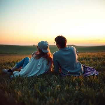 Dos pintores tirados en la grama haciendo un mismo cuadro
