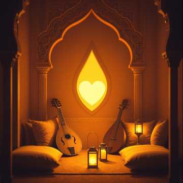 Warm Khaleeji pop ballad, mid‑tempo. Oud and qanun carrying the main riff, soft percussion with deep, round kick and subtle claps. Male vocals upfront, intimate in verses, then opening into a wider, soaring chorus with stacked harmonies and gentle reverb. Strings swell into the hook, with a short instrumental break before the last chorus for a lifted, emotional finish.